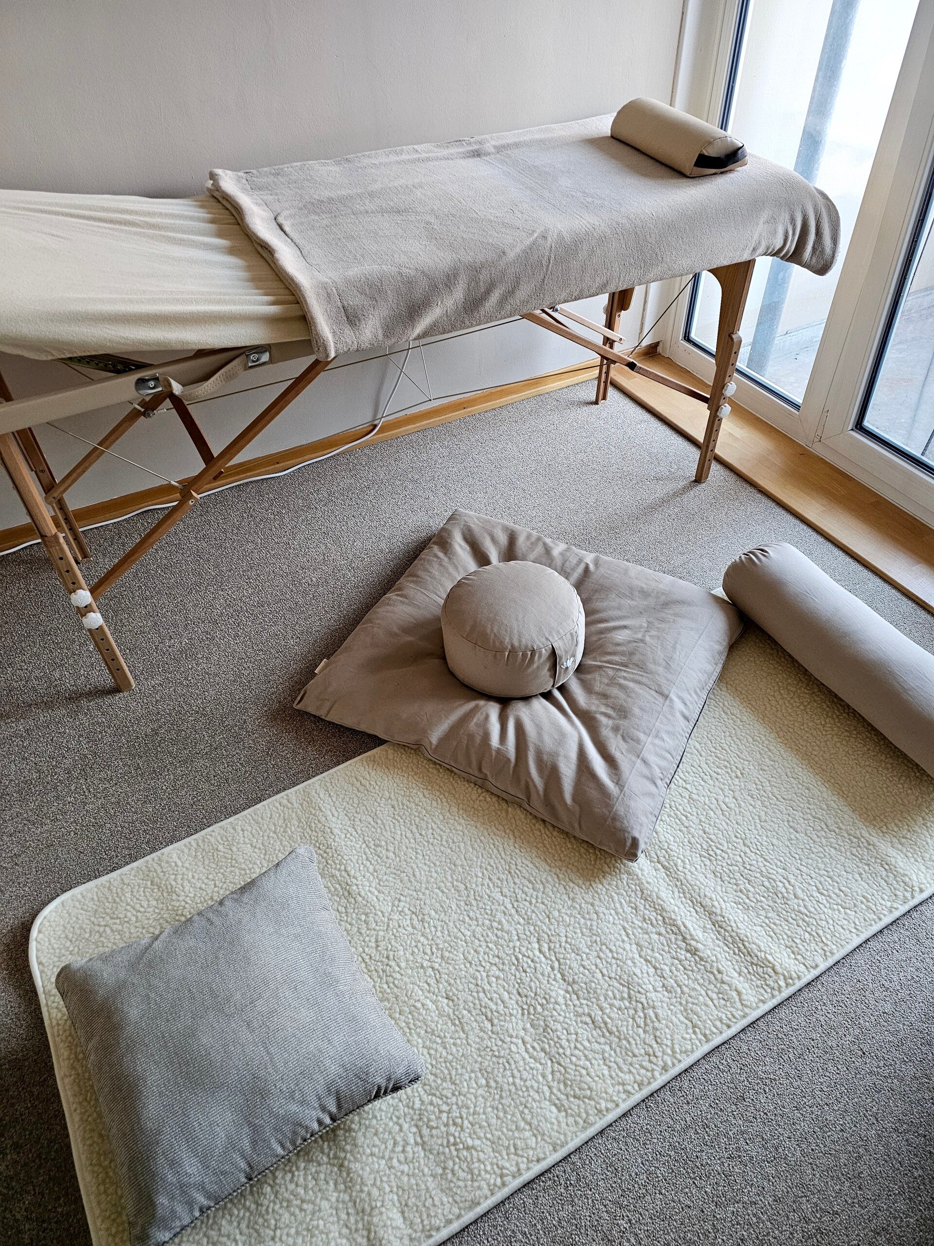 Oft beginnt die Session mit ein paar ruhigen Atemzügen, einer kurzen Meditation oder Fantasiereise. -