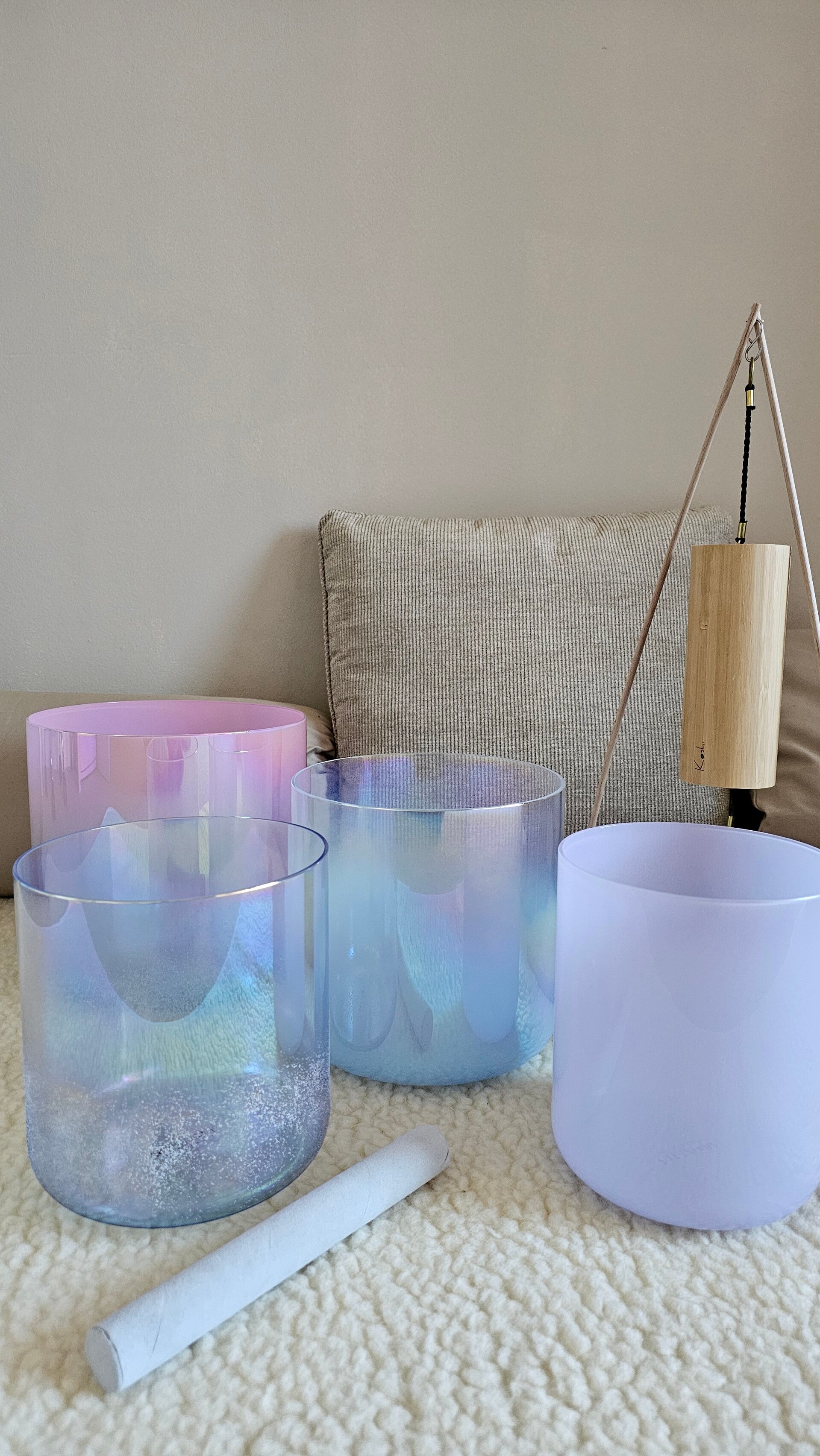 Die Crystal Singing Bowls und andere Instrumente erzeugen sanfte Klanglandschaften, die dich in einen meditativen Zustand führen. -